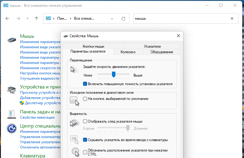 - Перейдите на вкладку «Дополнительно» и найдите «Скорость указателя».